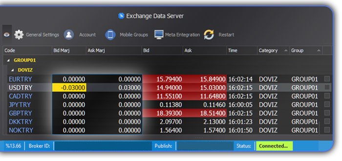 Exchange Data Server masaüstü uygulaması ile fiyatlarınızı oluşturun, marjlandırın ve yayınlayın.